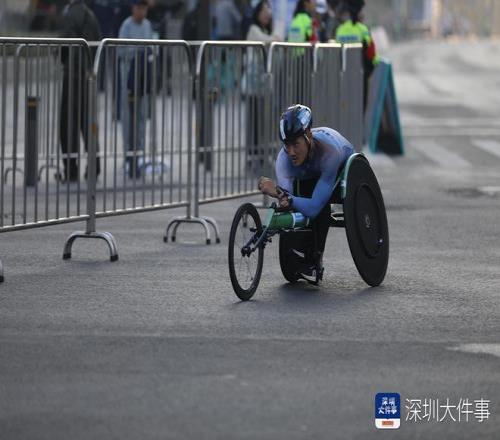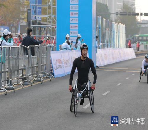 在率先發(fā)槍的全程馬拉松T54級(競速輪椅)比賽中,男子組決賽沖線階段上演了驚心動魄的對決。來自遼寧的選手金華以1小時(shí)27分04秒的成績率先沖過位于寶安區(qū)海濱廣場的終點(diǎn)線,勇奪金牌。上海選手羅興傳以1小時(shí)27分05秒的成績緊隨其后,兩人成績僅差1秒,展現(xiàn)了頂尖選手間極致的速度與技巧。另一名上海選手代云強(qiáng)以1小時(shí)30分02秒獲得季軍。