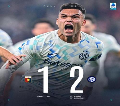 北京時間12月15日,在意甲第15輪的比賽中,國際米蘭依靠比塞克和勞塔羅的進(jìn)球客場2-1戰(zhàn)勝熱那亞,以1分優(yōu)勢重回積分榜首位。