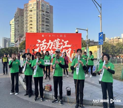 港口一路氛圍點則是奏響奮進之歌,江門老干部大學陽光樂團的成員帶來電吹管合奏《氣勢如虹》,激昂旋律搭配劉德華《中國人》《一起走過的日子》等經典歌曲,奏響了拼搏與堅守的號角,用不老熱愛為江馬喝彩。