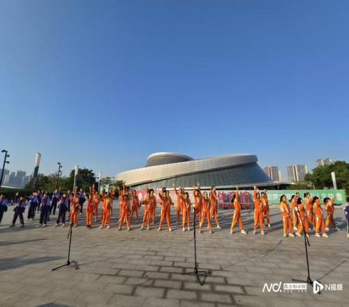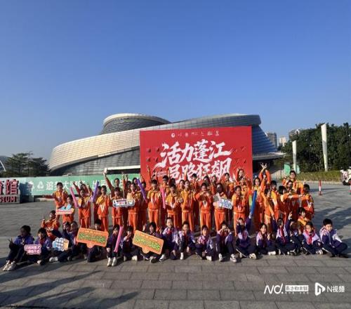 江門市體育中心體育館門前的氛圍點同樣高潮迭起,屢獲各級賽事大獎的范羅岡濱江小學雅范合唱團以純凈童聲唱響粵語版《氣勢如虹》《冬至燒雞》《星辰大?!?,清亮的歌聲成為賽道上最動人的“能量補給”。
