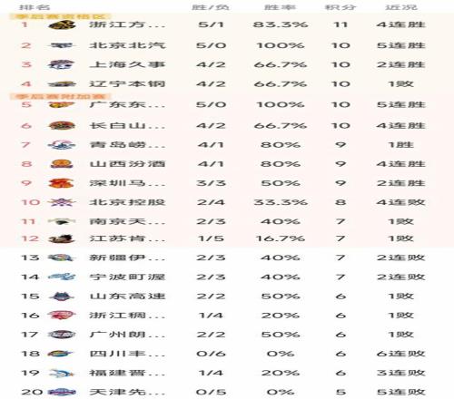 北京時間12月26日,CBA常規(guī)賽第6輪已經(jīng)結(jié)束了4場比賽,最新積分榜如下!