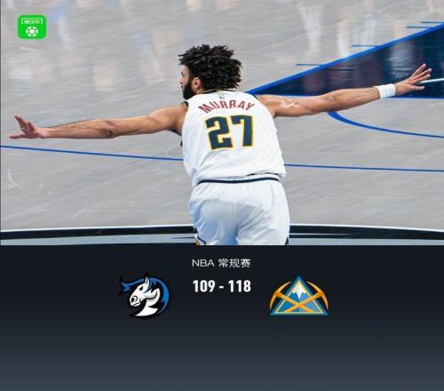 第四節獨行俠布蘭登-威廉姆斯拿下11分,掘金賈馬爾-穆雷拿下11分,最終獨行俠109-118不敵掘金