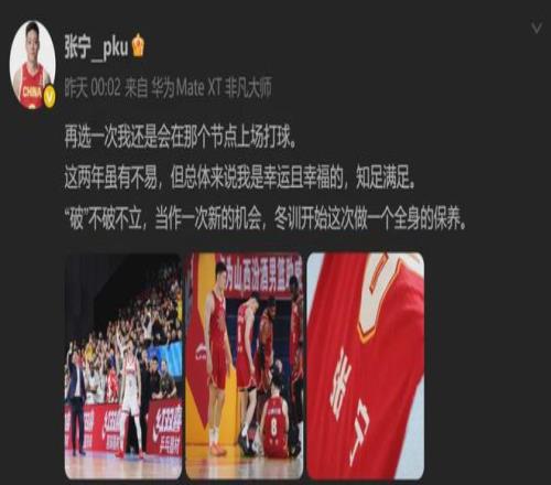 但張寧不這么想:“再選一次我還是會(huì)在那個(gè)節(jié)點(diǎn)上場(chǎng)打球。這兩年雖有不易,但總體來說我是幸運(yùn)且幸福的,知足滿足。‘破’不破不立,當(dāng)作一次新的機(jī)會(huì),冬訓(xùn)開始這次做一個(gè)全身的保養(yǎng)。”