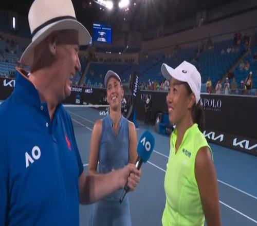 而今天她們站上的瑪格麗特·考特球場對于張帥來說有著非凡的意義,特別是賽后那位熟悉的主持人出現(xiàn)時,無數(shù)回憶涌現(xiàn)在帥姐的腦海中,那是一場拯救了她職業(yè)生涯的比賽...